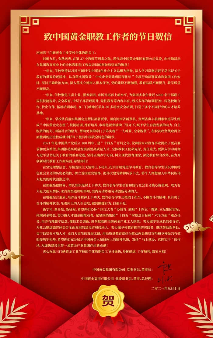 【集團要聞】致中國黃金職教工作者的節日賀信