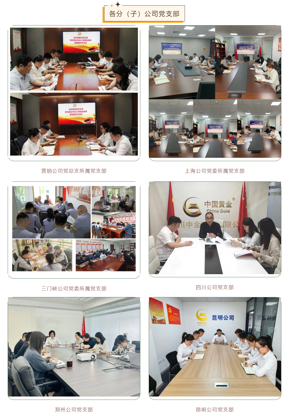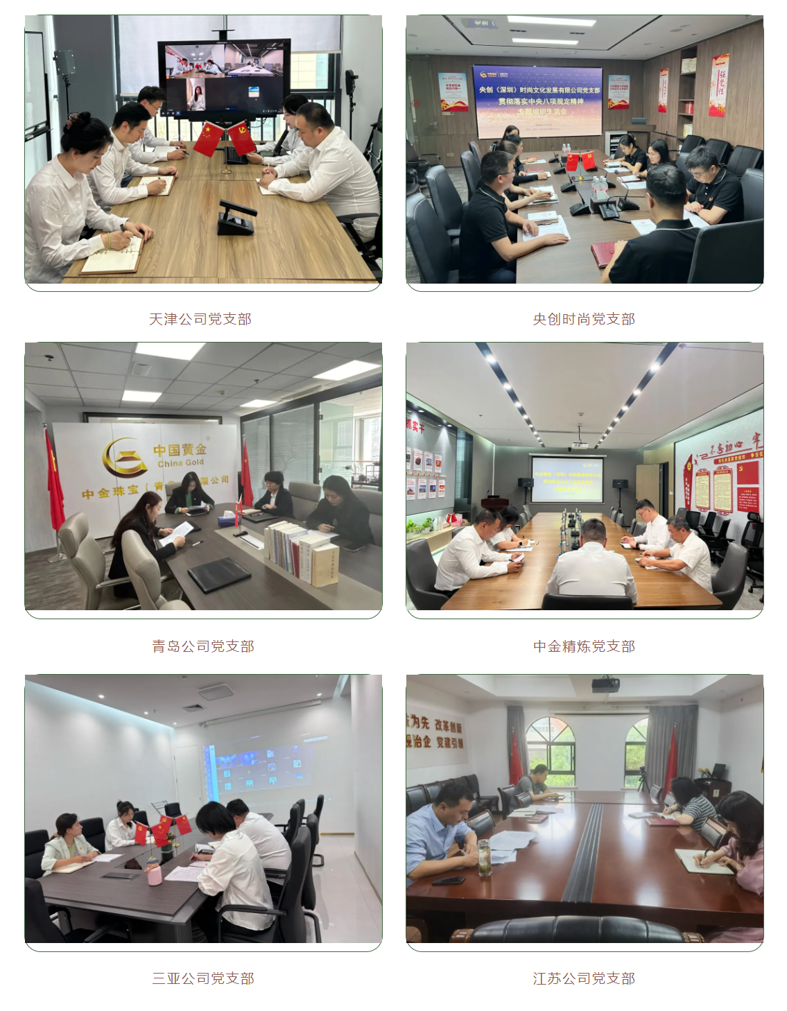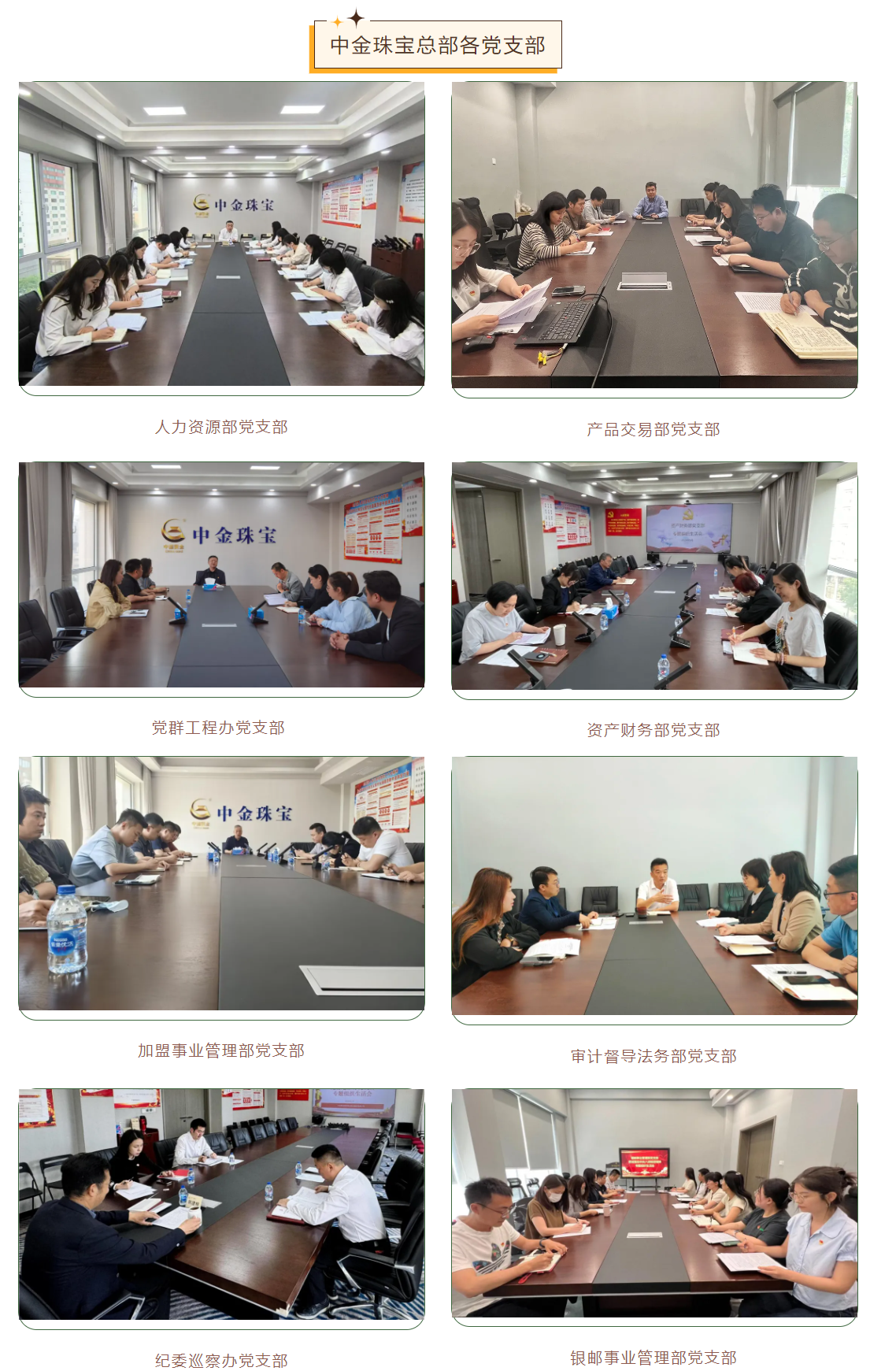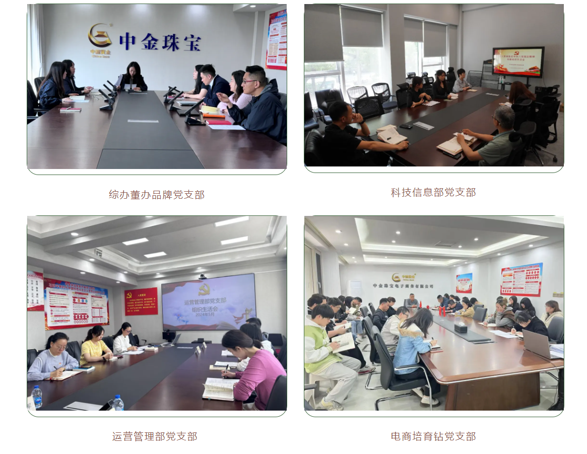 為深入學習貫徹習近平新時代中國特色社會主義思想和黨的二十大精神,深入落實二十屆中央紀委三次全會、國務院國資委黨風廉政建設和反腐敗工作會議精神和集團公司貫徹落實中央八項規定精神警示教育大會部署要求,貫徹落實國務院國資委黨委第一巡視組政治巡視要求,近日,中金珠寶各黨支部高質量、高標準完成貫徹落實中央八項規定精神專題組織生活會,廣大黨員干部認真交流學習體會,查找差距不足,盤點收獲、檢視問題、深刻剖析、落實整改,開展批評與自我批評,推動黨紀學習教育取得實效,達到了統一思想、凝聚共識、提升境界、匯聚力量的效果。
