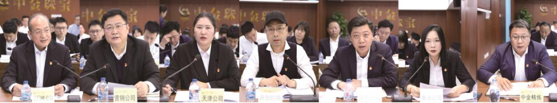 會議聽取三門峽公司、營銷公司、天津公司、央創時尚、昆明公司、青島公司、中金精煉7家企業黨組織主要負責同志進行述職,總結黨建工作成效,查擺不足,提出努力方向。中金珠寶班子成員、總部各部門負責人對現場述職企業黨組織主要負責同志就貫徹落實習近平總書記重要指示批示精神、深入學習貫徹黨的二十屆三中全會精神和謀劃全面深化改革工作、采取務實舉措找到有力抓手推動黨建與業務工作有機融合、嚴格貫徹落實“第一議題”制度、推進基層黨建“三基”建設、在干部人才的選、用、育、留方面做到人盡其才、人崗匹配持續激發廣大干部職工的工作積極性、將巡察整改成果納入本企業的日常管理、考核體系并形成長效機制、在創新業務發展過程中做到風險管控和合規管理、統籌企業高質量發展和高水平安全等向述職書記提問。劉科軍逐一點評,肯定了各單位黨組織落實主體責任、黨委書記履行第一責任,推動全面從嚴治黨向基層延伸取得的成績,并有針對性地提出工作要求。