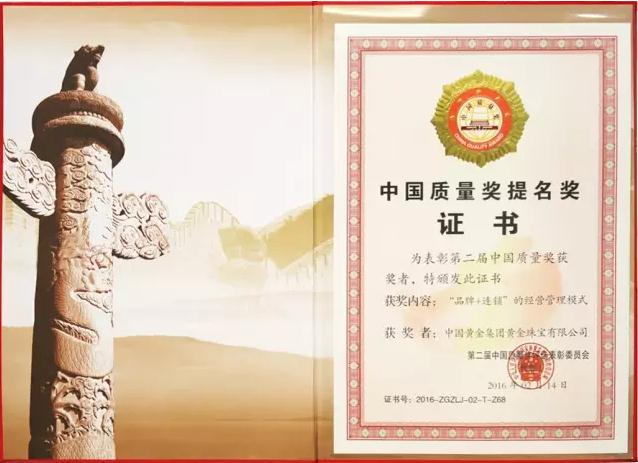 翻開品牌榮譽簿,中國黃金近年來持續(xù)獲得多個獎項:2016年獲中國質(zhì)量獎提名獎;2021年在中國黃金珠寶盛典中,獲得“全國連鎖推薦品牌“ “百強金店”等多項榮譽;2022年蟬聯(lián)我喜愛的中國品牌百強榜;在2024新華社、中國品牌建設促進會、中國資產(chǎn)評估協(xié)會等單位共同發(fā)布的“中國品牌價值評價信息”中,中國黃金品牌價值蟬聯(lián)零售業(yè)前三……